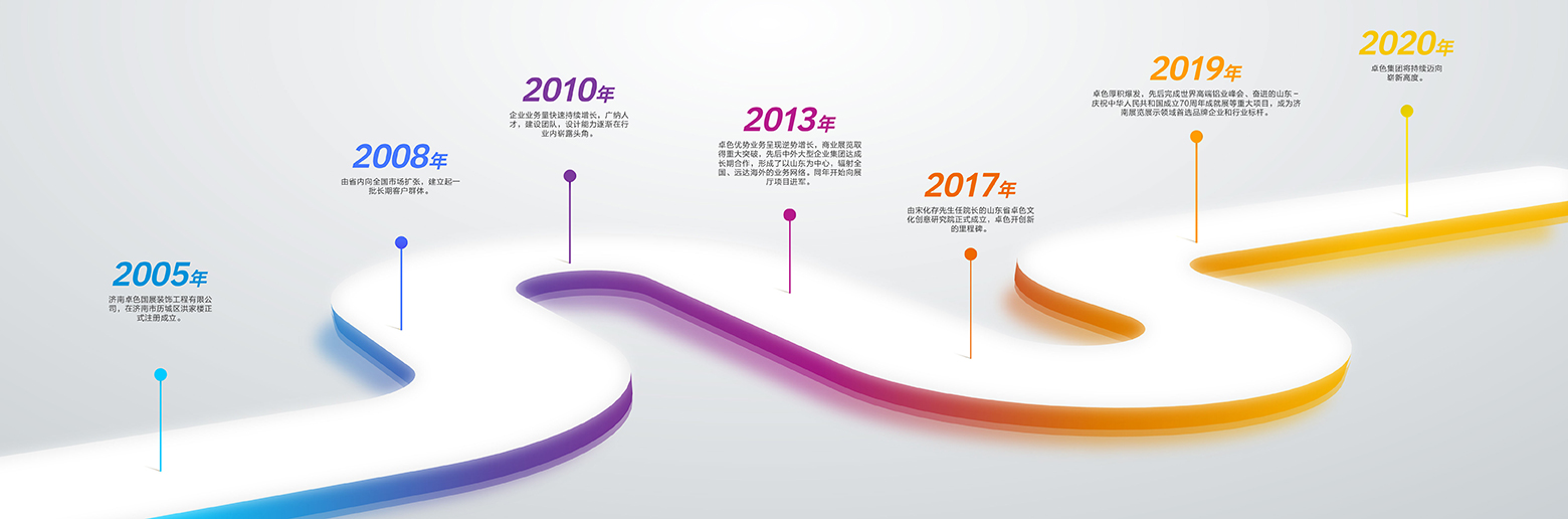 濟南卓色國展裝飾工程有限公司始創(chuàng)于2005年,于2013年進行企業(yè)更新升級,是山東省第一家以高校創(chuàng)意團隊為背景,致力于展覽展示服務(wù)、會議活動策劃及展廳展館設(shè)計施工一體化的專業(yè)性文創(chuàng)企業(yè)。